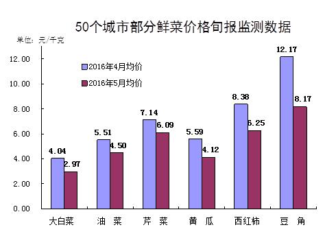从环比看,CPI环比下降0.5%,主要是受鲜菜价格下降较多的影响。年初寒潮天气袭击我国大部分地区,影响了鲜菜的生产和运输,鲜菜价格高位运行,较往年同期上涨较多。随着应季鲜菜上市,市场供应逐步增加,鲜菜价格趋于正常。5月份鲜菜价格环比下降21.5%,影响CPI环比下降约0.64个百分点,超过CPI环比总降幅。从50个城市主要食品价格旬报监测看,蔬菜价格回落幅度较大,部分鲜菜价格下降幅度甚至超过三成。5月份猪肉价格环比继续上涨,涨幅为2.3%,影响CPI环比上涨约0.07个百分点。国内成品油价格两次提价,汽油、柴油价格环比分别上涨3.7%和3.8%,合计影响CPI环比上涨约0.06个百分点。